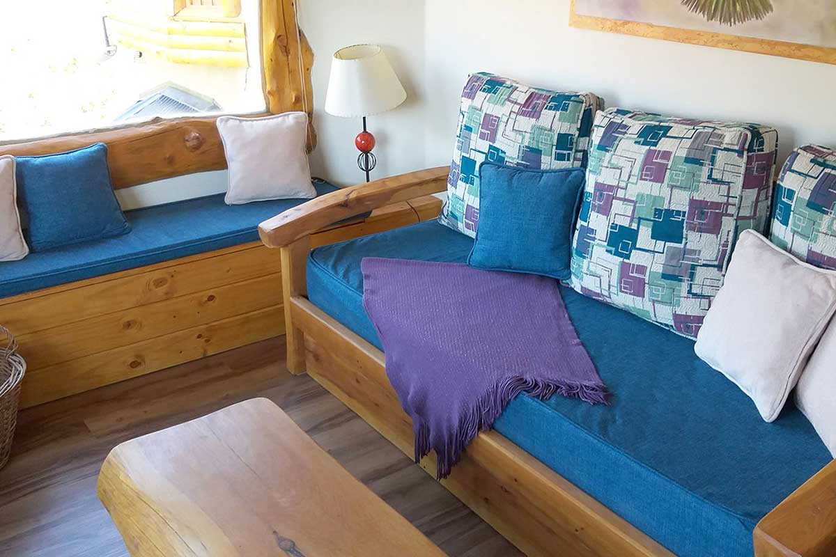 Duplex en 1er piso por escalera exterior, con hermosa al Cerro Catedral. PB, Living con chimenea a leña y TV de 43″, sillón cama con cama carro, comedor y cocina integrada completamente equipada para 6 pers. (microondas, jarra eléctrica, tostador, cafetera). Segundo baño con ducha. PA, dormitorio principal con cama matrimonial de 1,40mt., placard. Baño principal completo (bañadera con hidromasaje, bidet, secador de cabello). Segundo dormitorio con 2 camas de 1 plaza.